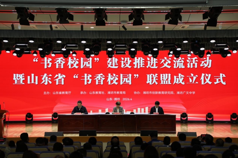 4月23日,山东省“书香校园”建设推进交流活动暨山东省“书香校园”联盟成立仪式在潍坊举办。活动深入落实《全民阅读促进条例》和全国青少年学生读书行动部署,通过交流经验、凝聚共识、建立联盟,着力破解建设难点、整合全省资源、强化示范引领,助推我省“书香校园”建设高质量发展。省教育厅一级巡视员孙晓筠出席活动并讲话。